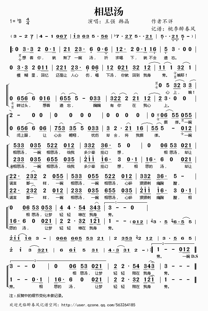 相思汤 简谱 曲谱 歌谱