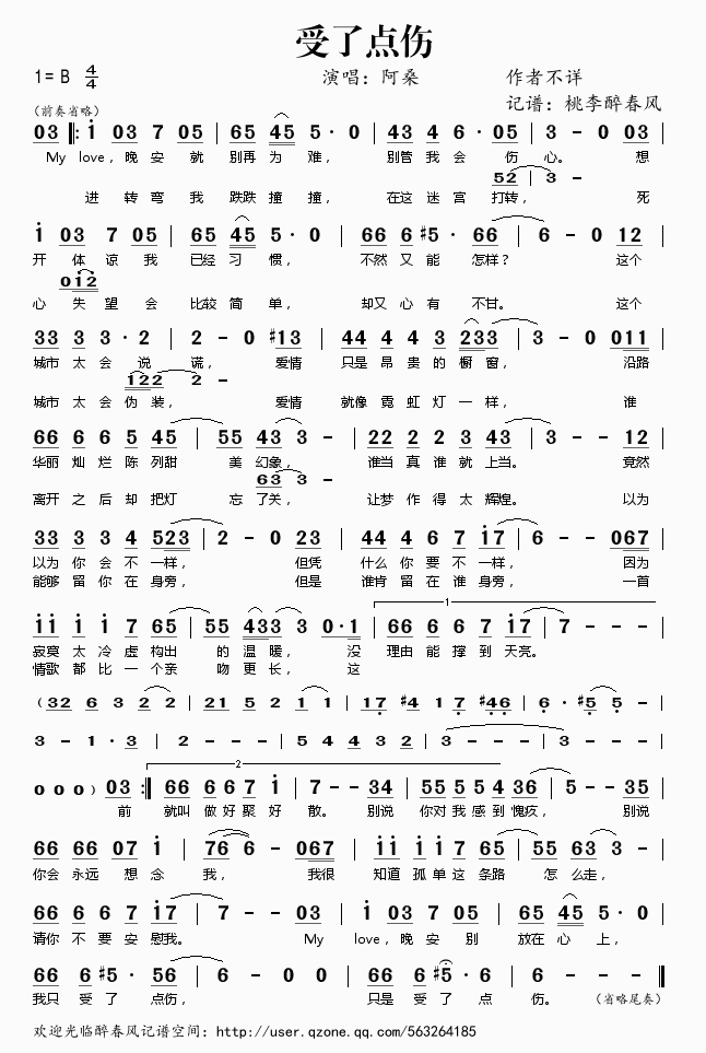 受了点伤 简谱 曲谱 歌谱