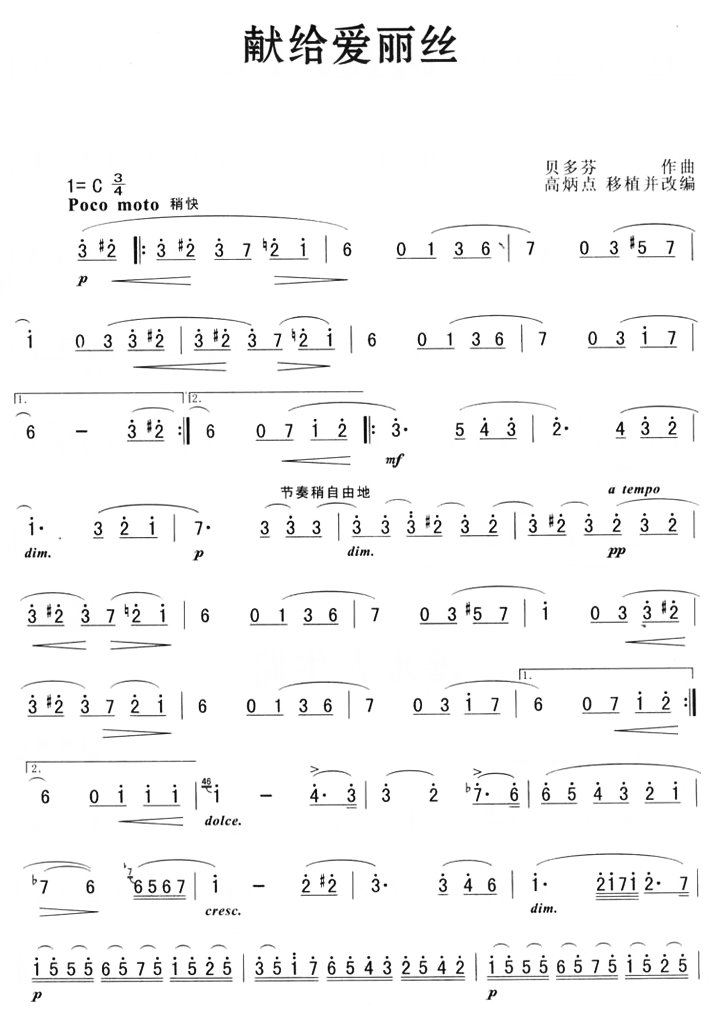 献给爱丽丝 简谱