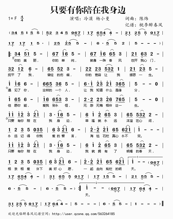 只要有你陪在我身边 简谱 曲谱 歌谱