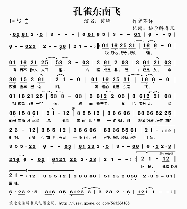孔雀东南飞 简谱 曲谱 歌谱