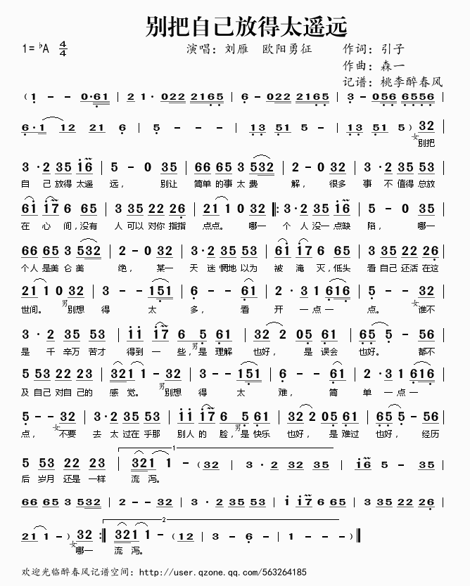 别把自己放得太遥远 简谱 曲谱 歌谱