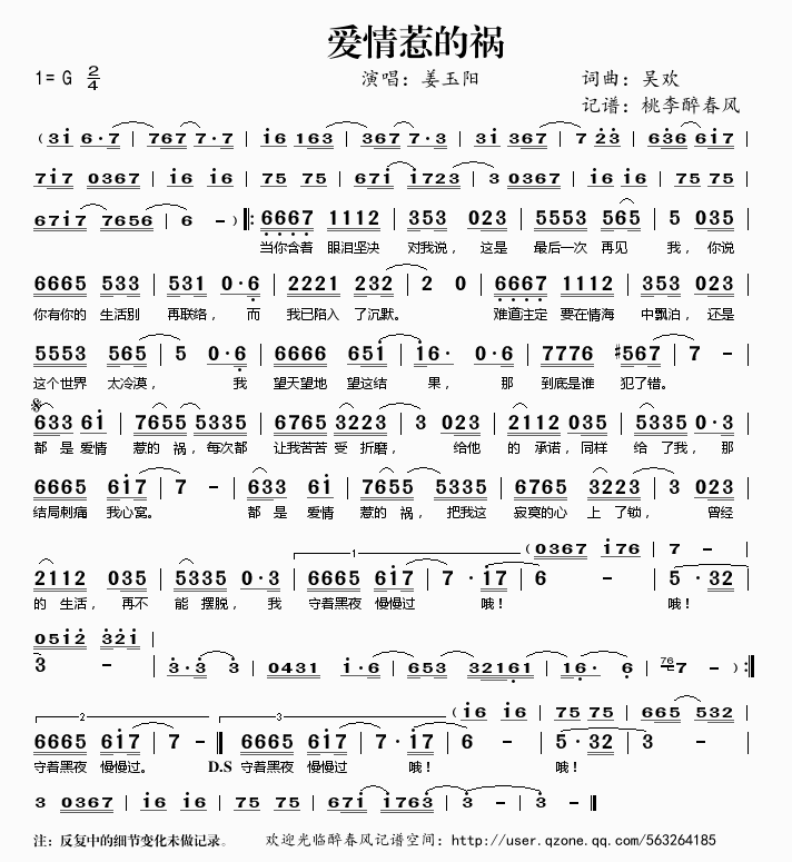 爱情惹的祸 简谱 曲谱 歌谱