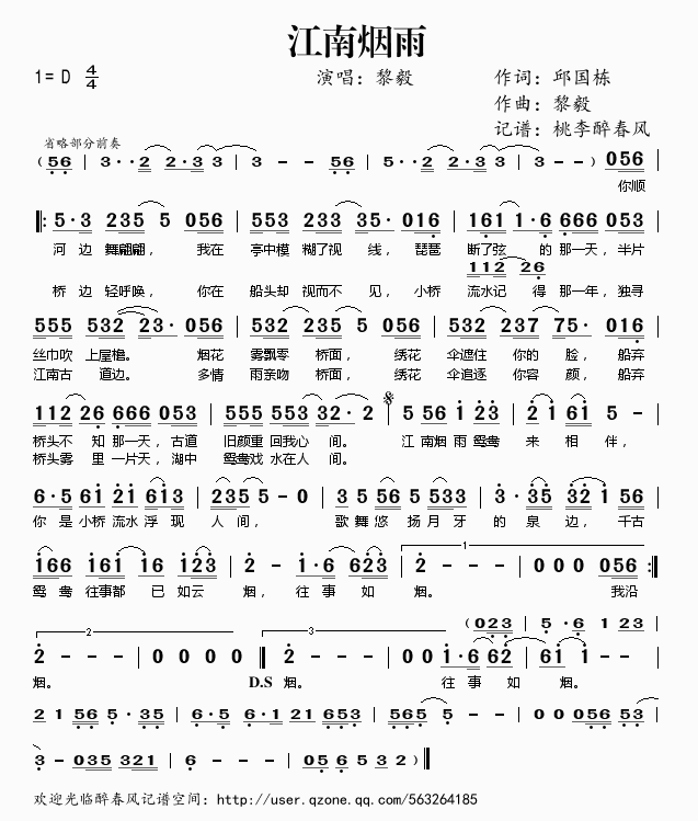 江南烟雨 简谱 曲谱 歌谱