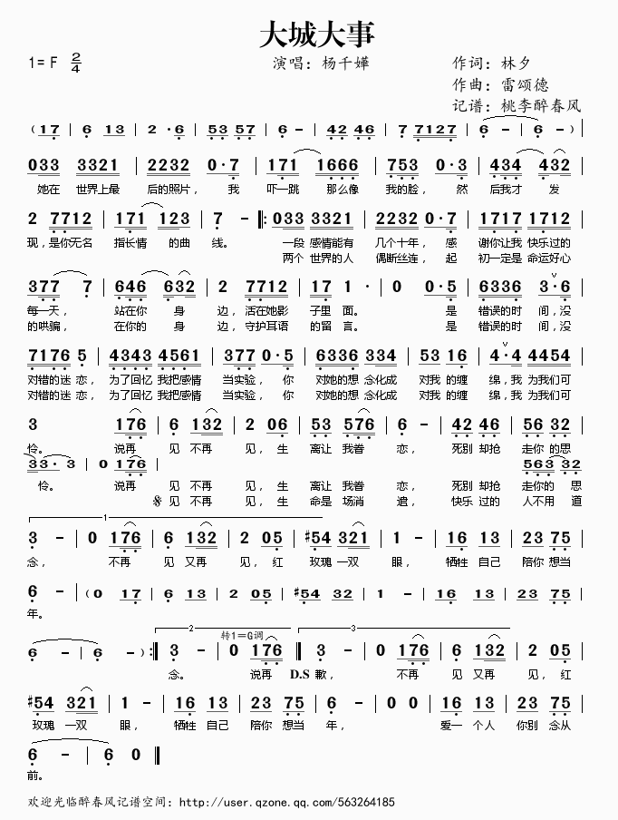 大城大事 简谱 曲谱 歌谱