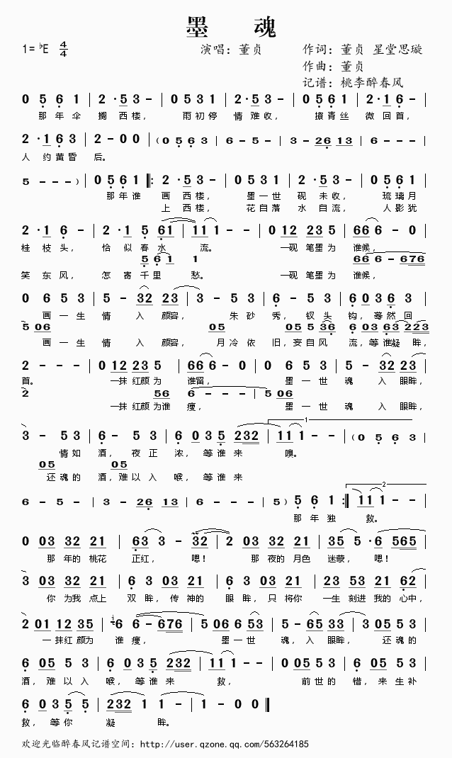 墨魂 简谱 曲谱 歌谱