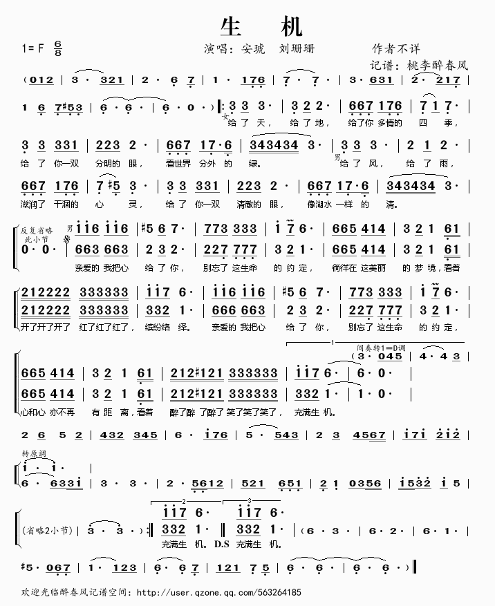 生机 简谱 曲谱 歌谱