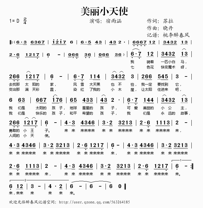 美丽小天使 简谱 曲谱 歌谱