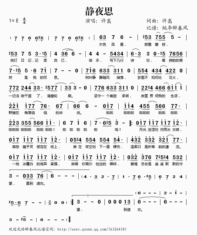 静夜思 简谱 曲谱 歌谱