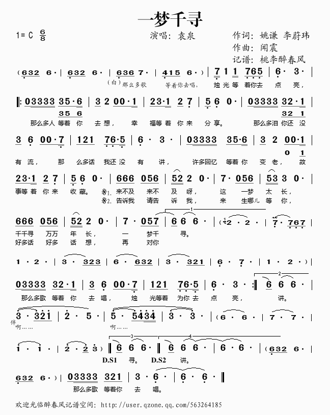 一梦千寻 简谱 曲谱 歌谱