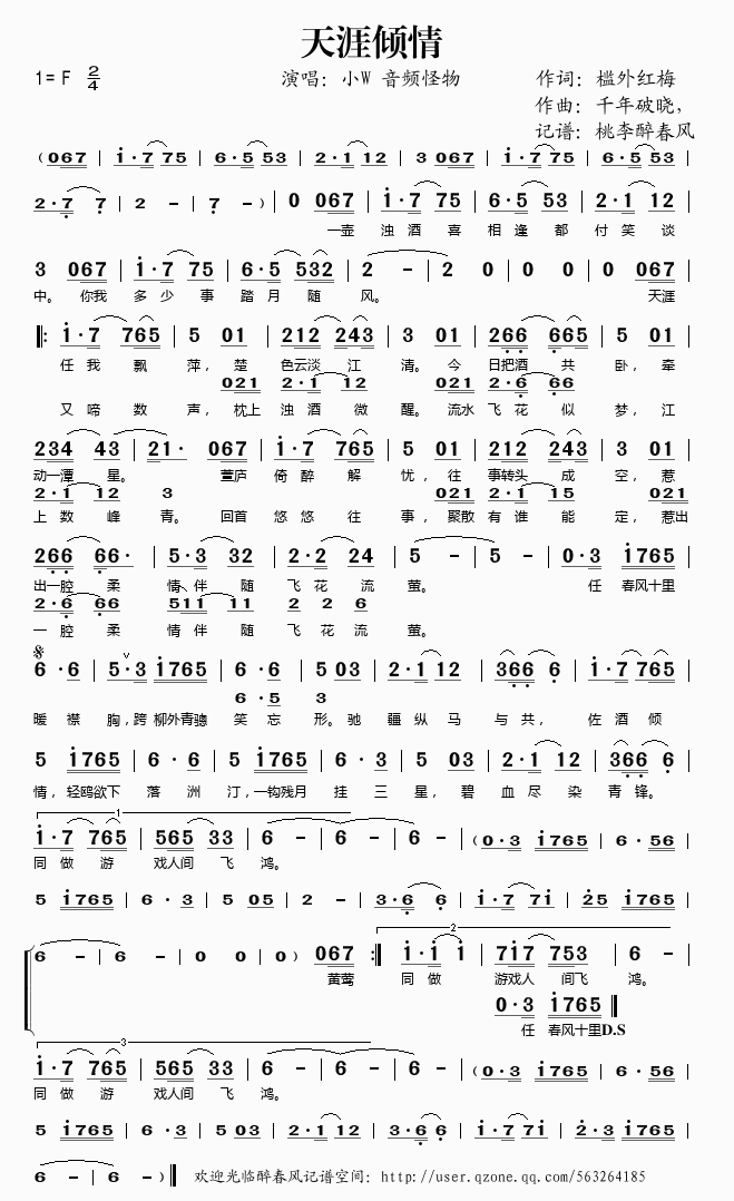 天涯倾情 简谱 曲谱 歌谱