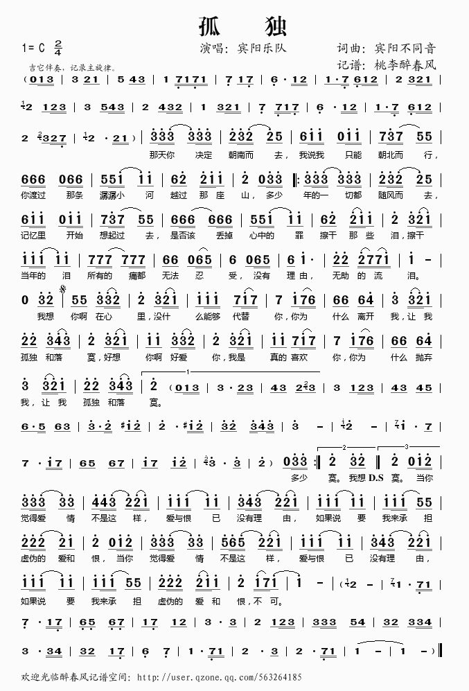 孤独 简谱 曲谱 歌谱