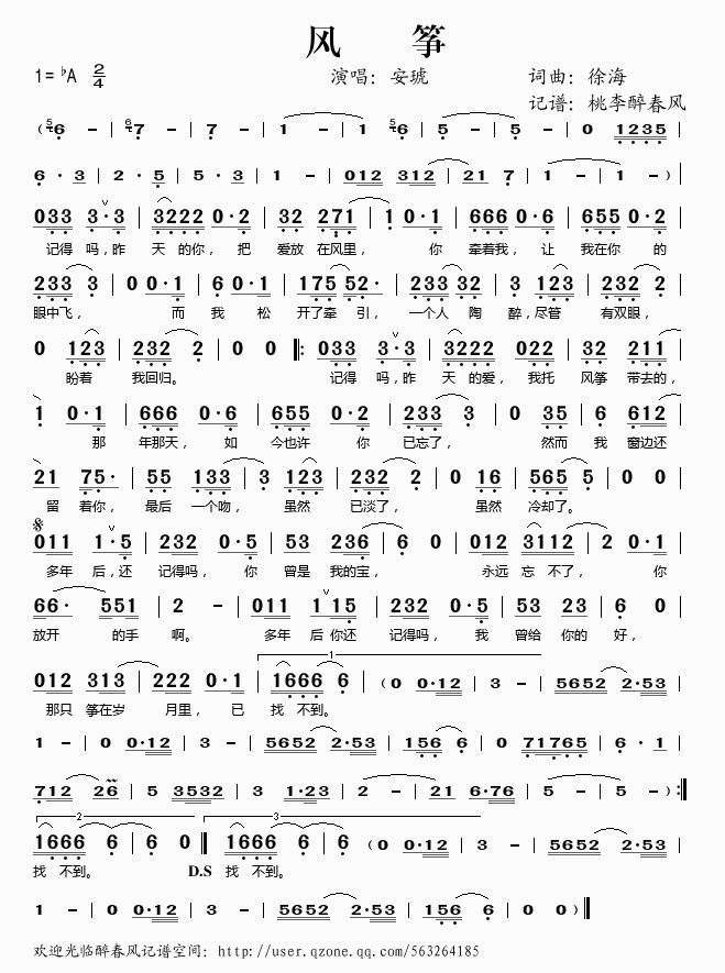 风筝 简谱 曲谱 歌谱