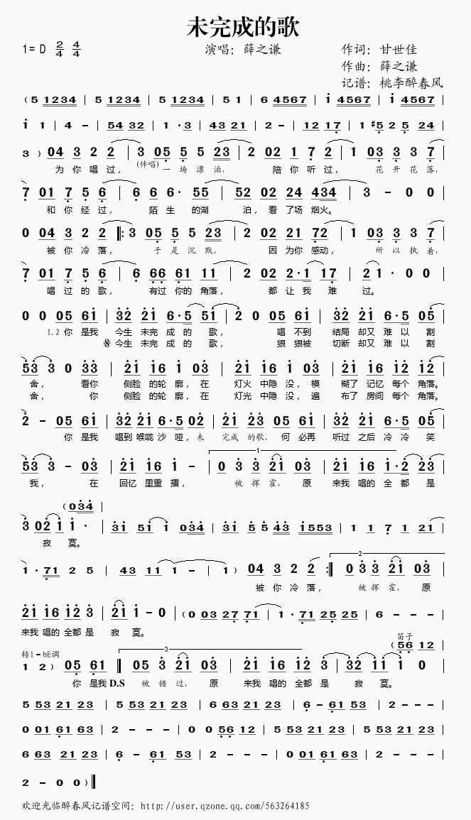未完成的歌 简谱 曲谱 歌谱