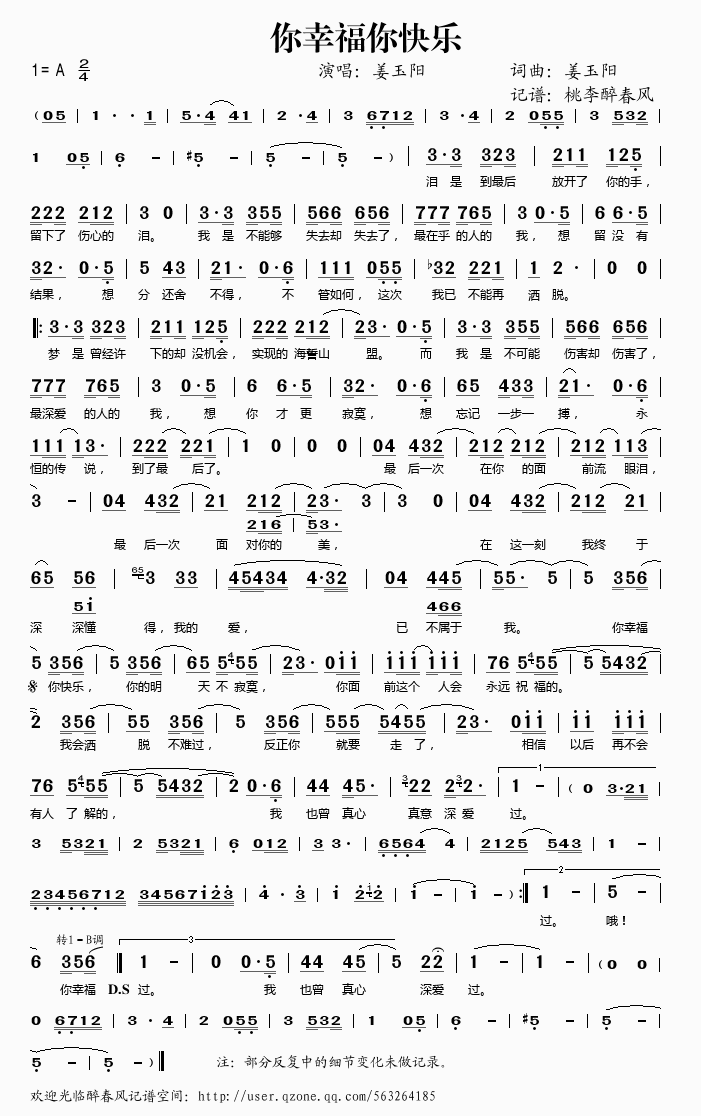 你幸福你快乐 简谱 曲谱 歌谱