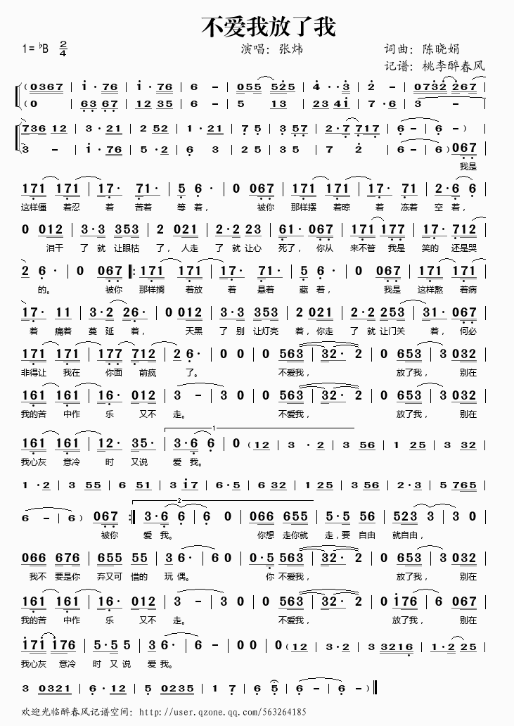 不爱我放了我 简谱 曲谱 歌谱