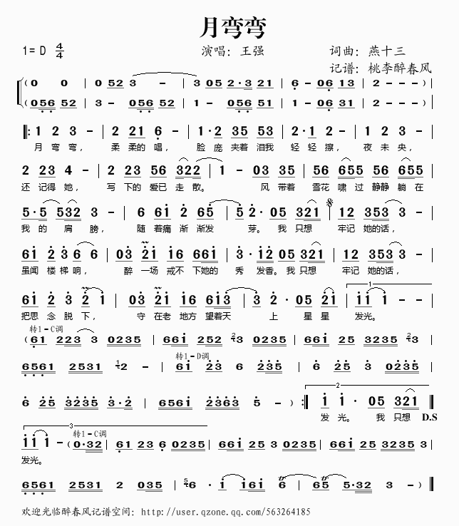 月弯弯 简谱 曲谱 歌谱