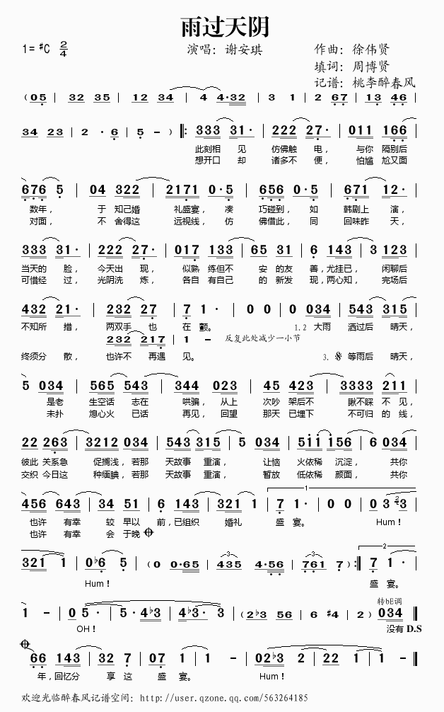 雨过天阴 简谱 歌词