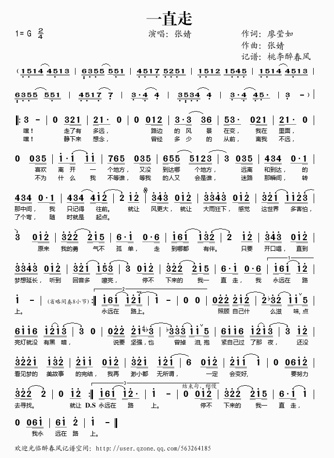 一直走 简谱 歌词