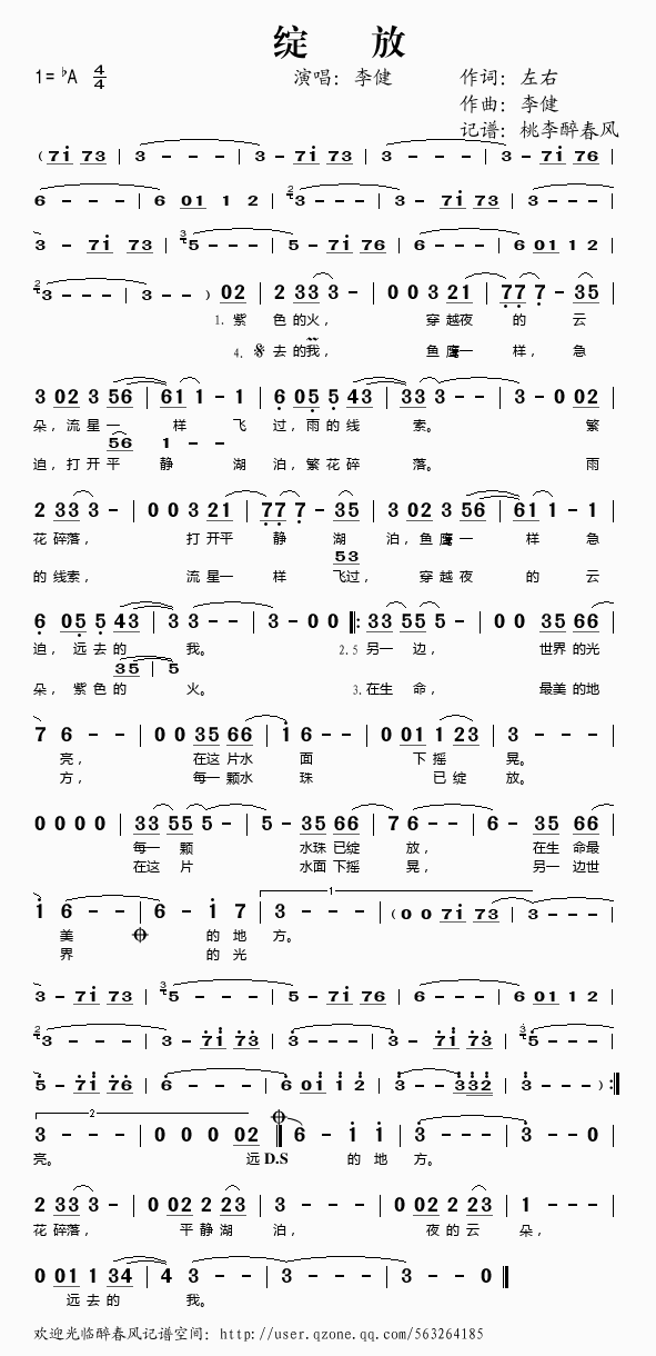 绽放 简谱 歌词
