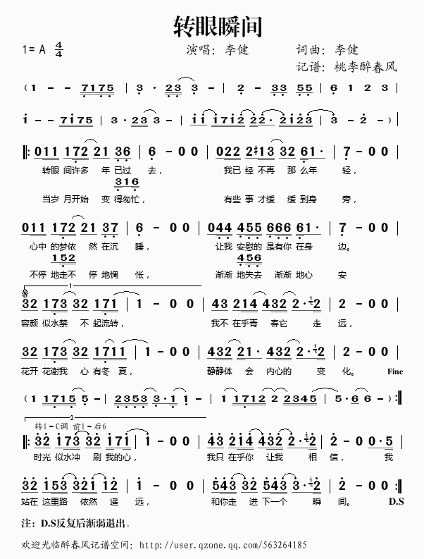 转眼瞬间 简谱 歌词