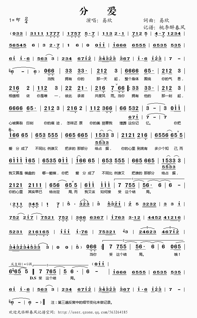 分爱 简谱 歌词