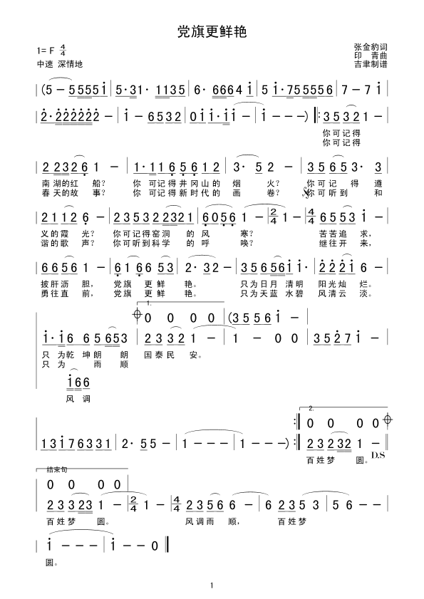 党旗更鲜艳 简谱 曲谱 歌谱