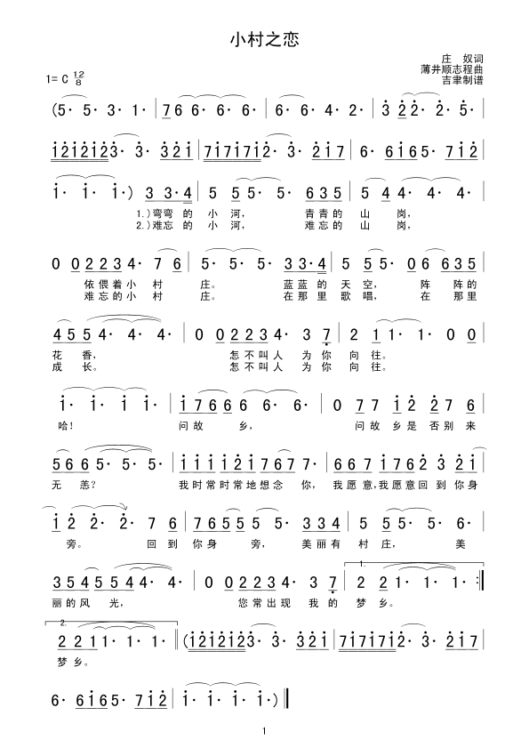 小村之恋 简谱 曲谱 歌谱