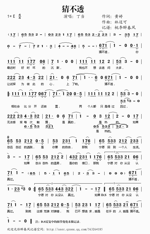 猜不透 简谱 歌词