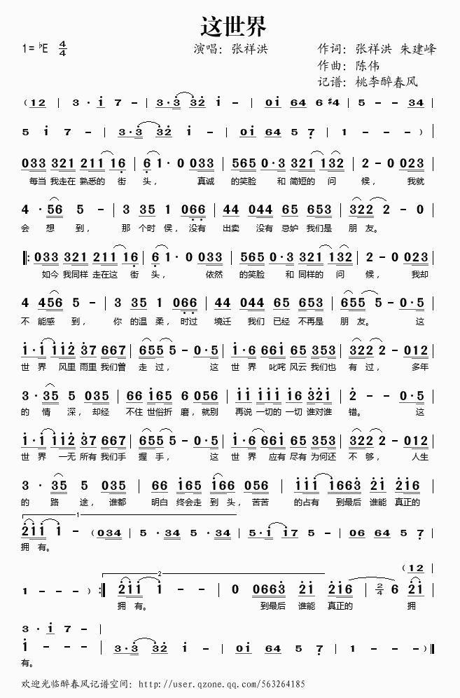 这世界 简谱 歌词
