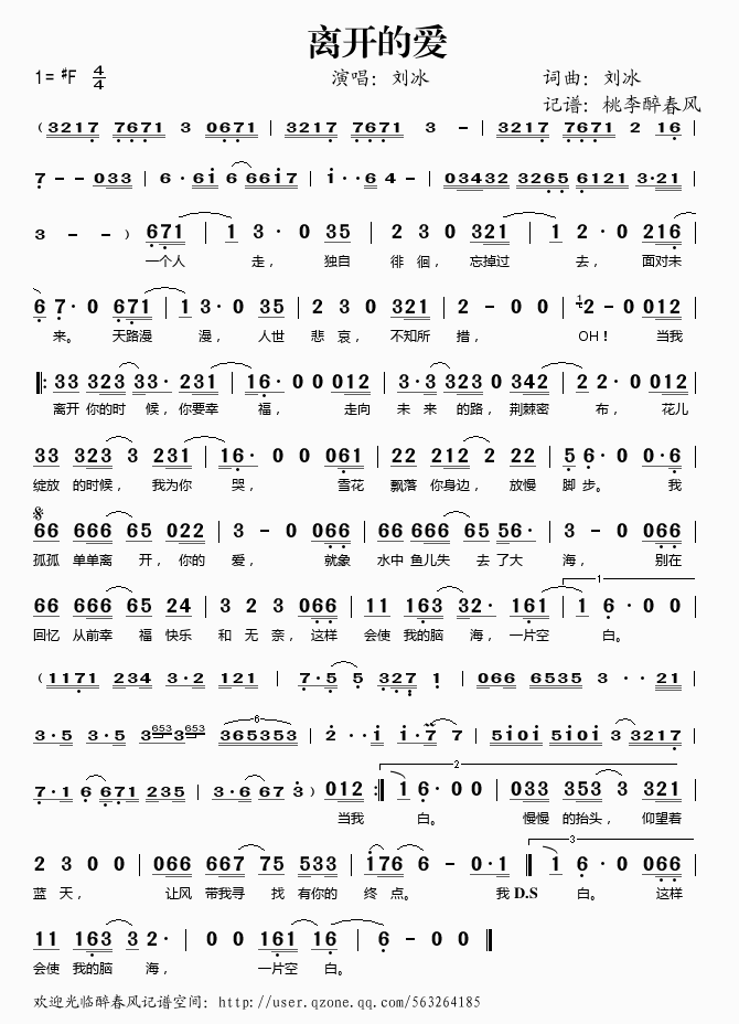 离开的爱 简谱 歌词