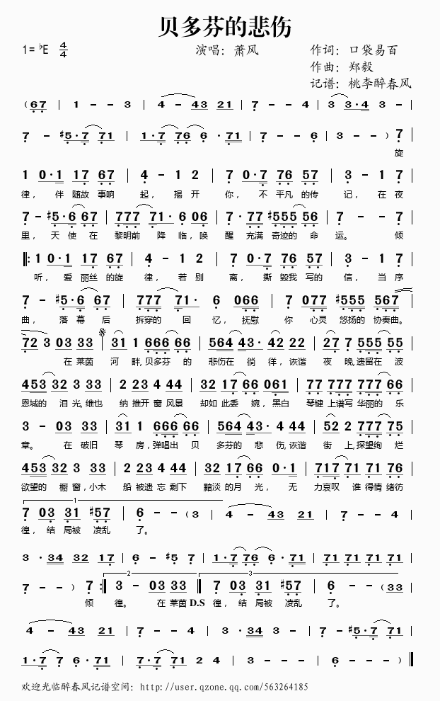 贝多芬的悲伤 简谱 歌词