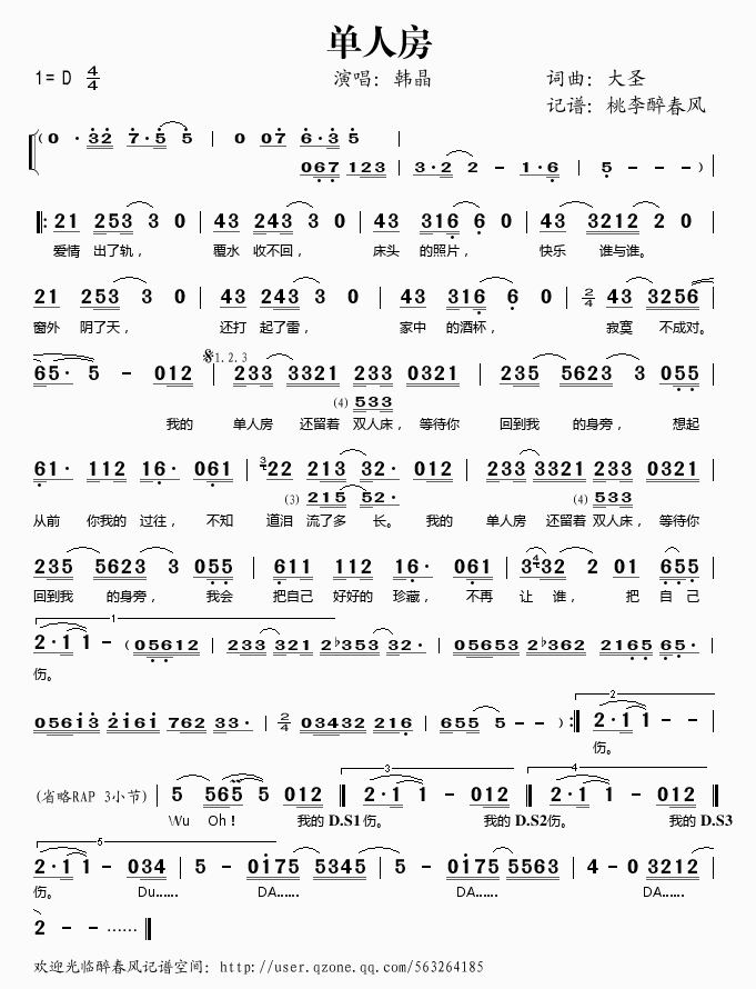单人房 简谱 歌词