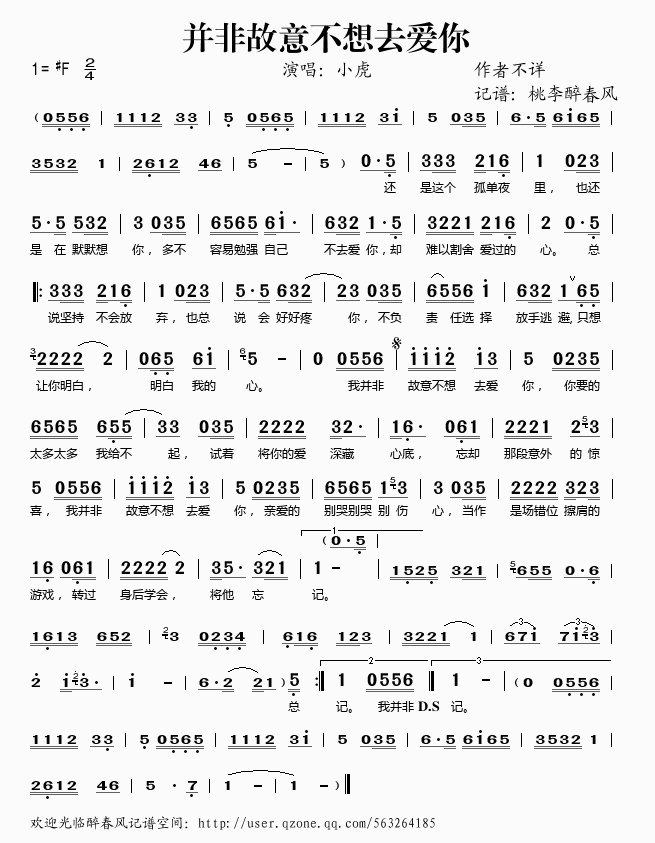 并非故意不想去爱你 简谱 歌词