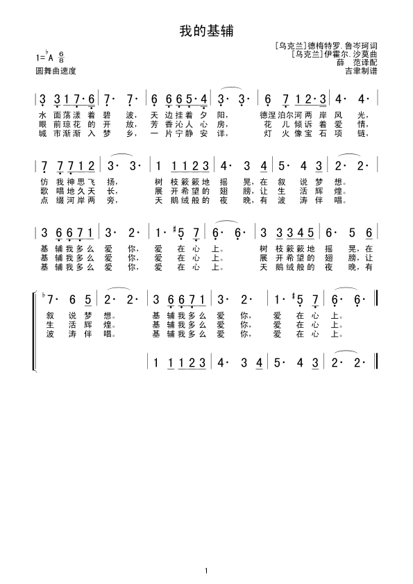 我的基辅 简谱 曲谱 歌谱