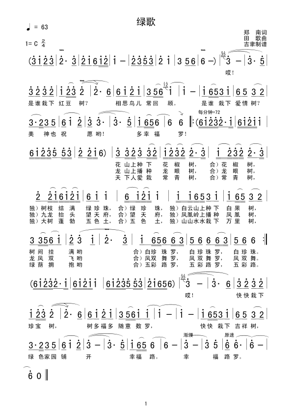 绿歌 简谱 曲谱 歌谱