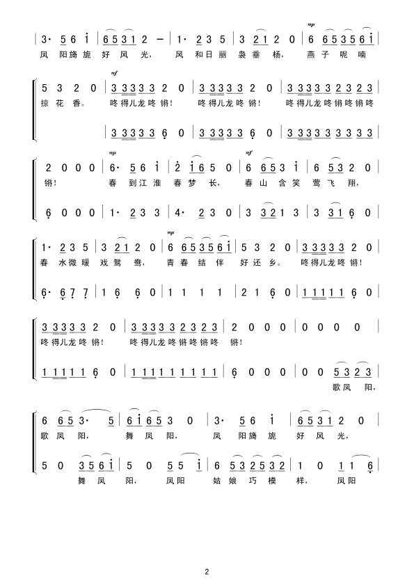 凤阳歌舞 简谱 曲谱 歌谱