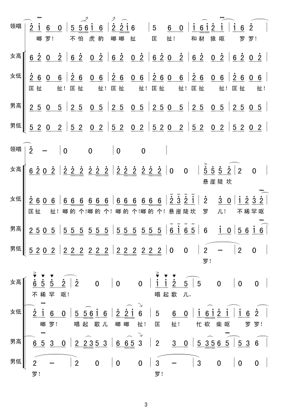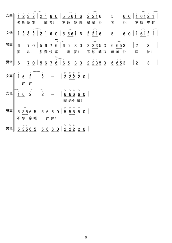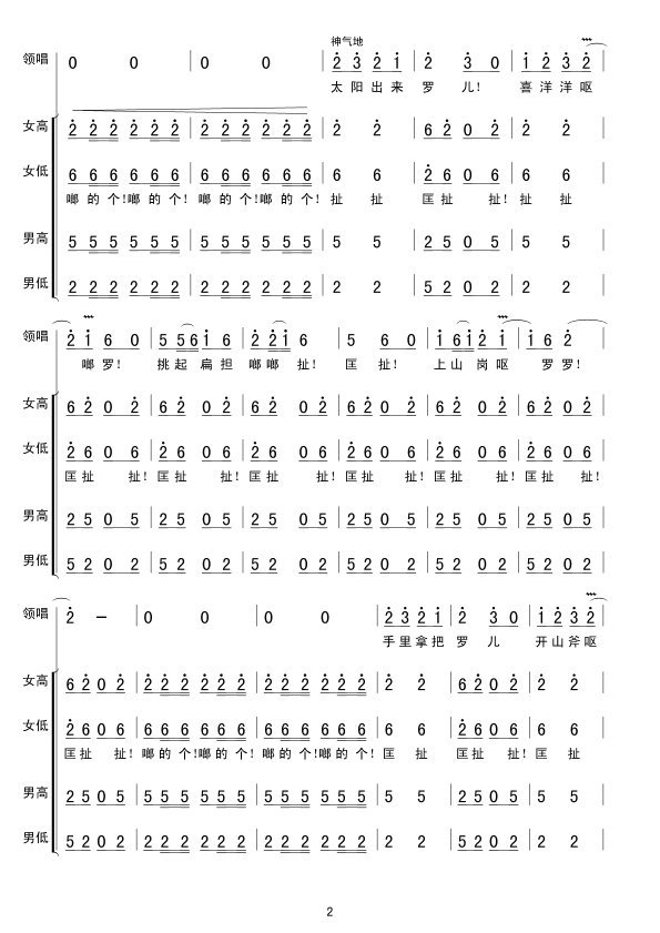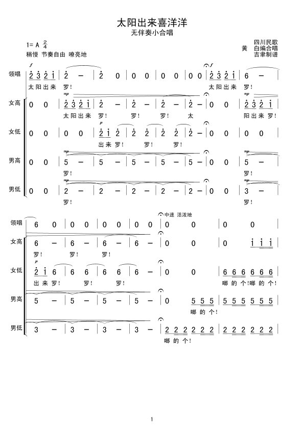 太阳出来喜洋洋 简谱 曲谱 歌谱