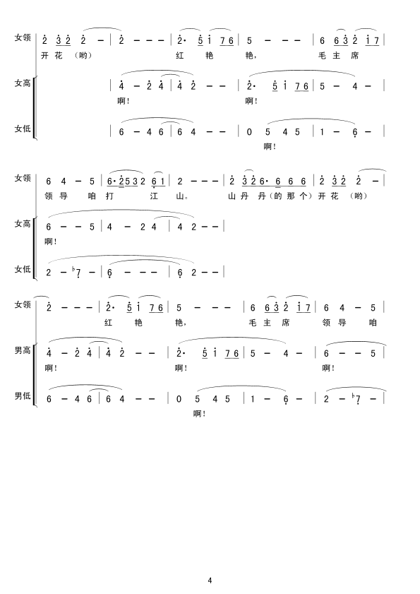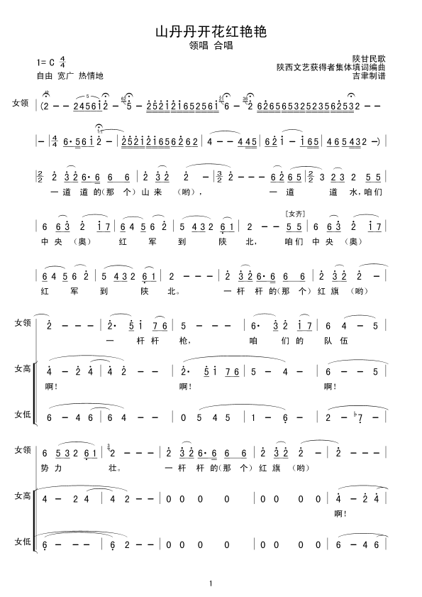 山丹丹开花红艳艳 简谱 曲谱 歌谱