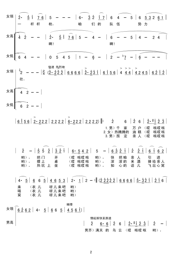太阳出来喜洋洋 简谱 曲谱 歌谱