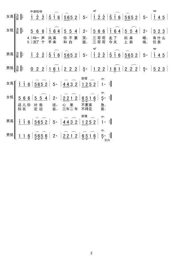 三十里铺 简谱 曲谱 歌谱