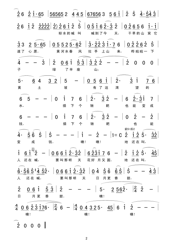 喊叫水 简谱 曲谱 歌谱