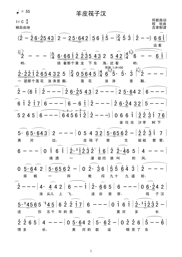 羊皮筏子汉 简谱 曲谱 歌谱