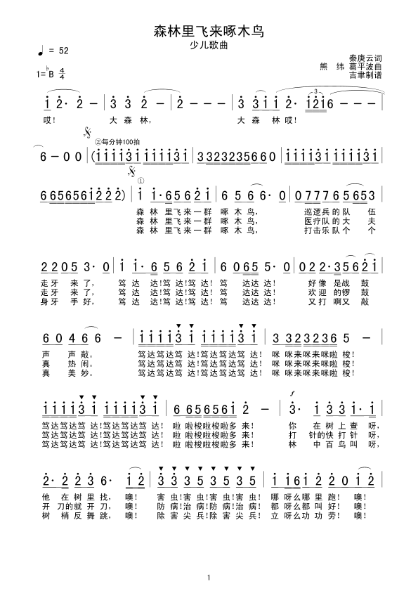 森林里飞来啄木鸟 简谱 曲谱 歌谱
