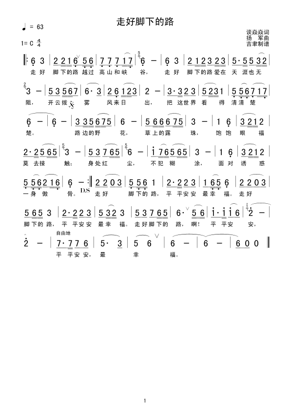 走好脚下的路 简谱 曲谱 歌谱