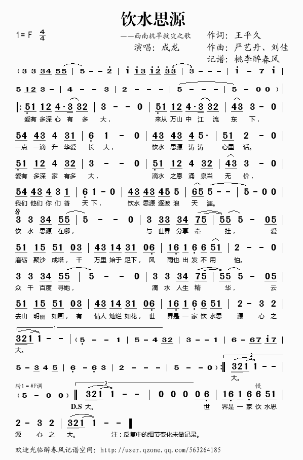 饮水思源 简谱 歌词