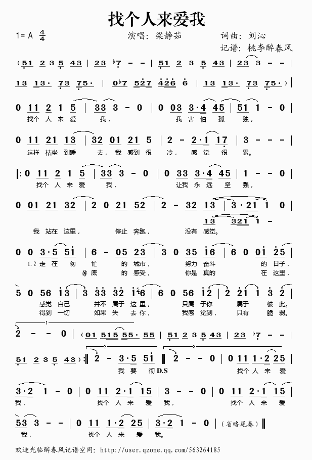 找个人来爱我 简谱 歌词