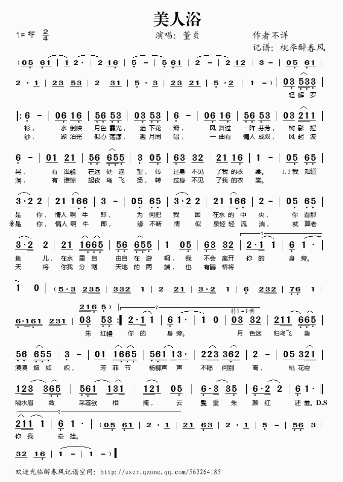 美人浴 简谱 歌词