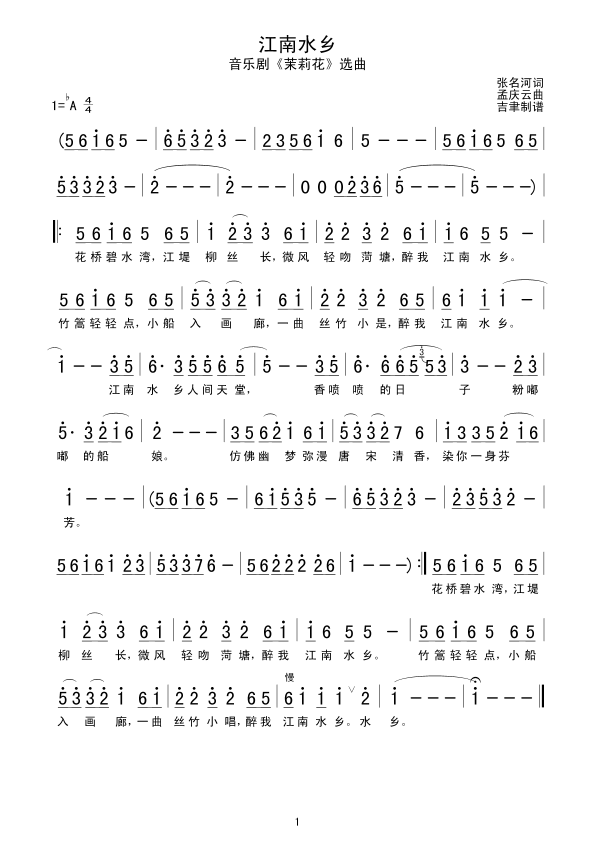 江南水乡 简谱 曲谱 歌谱