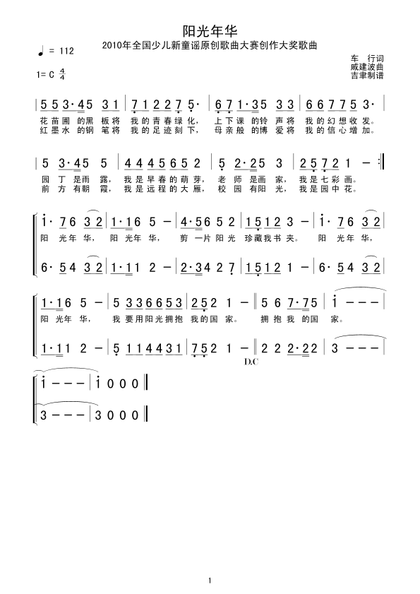 阳光年华 简谱 曲谱 歌谱